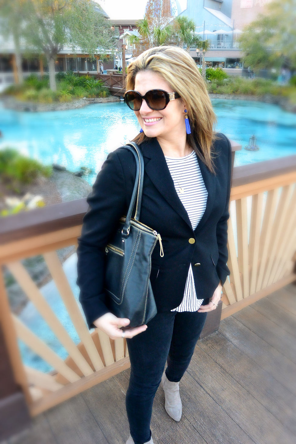 Not knowing if we would be seeing a movie after dinner, I decided on a simple date night look. I paired my new American Eagle jeans with a simple trendy peplum top and added a blazer for a more 'dressed,' up look. Tassel earrings are a fun spring trend that are popping up all over NYFW. I found these cute earrings at Target ( I love that place).