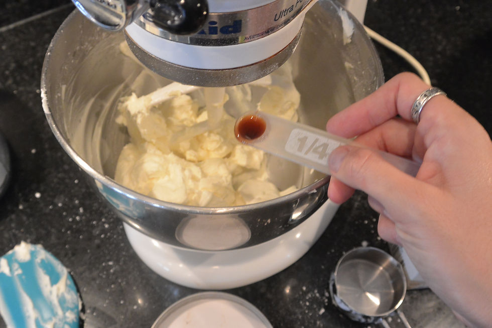 4. Now add the vanilla and milk, and beat on medium-high, just until blended. Do not over beat.
