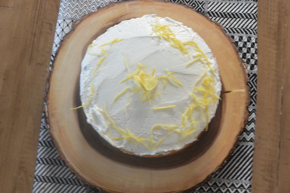 6. Zest your lemon and finely chop it, then add it to your cake batter and mix well. DON'T chop all of the lemon zest. Set some aside for garnish/decoration for your cake.