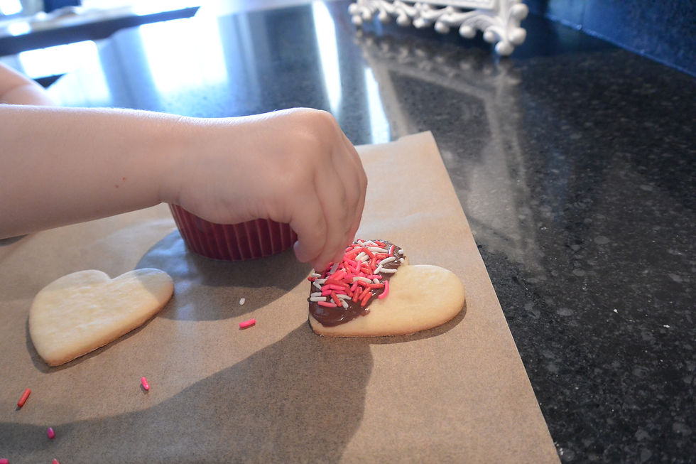 I had a bunch of extra boxes of chocolates, and decided to pair them with my favorite short bread recipe. The result was cookie perfection! I was even able to get my youngest daughter to help me decorate the cookies.